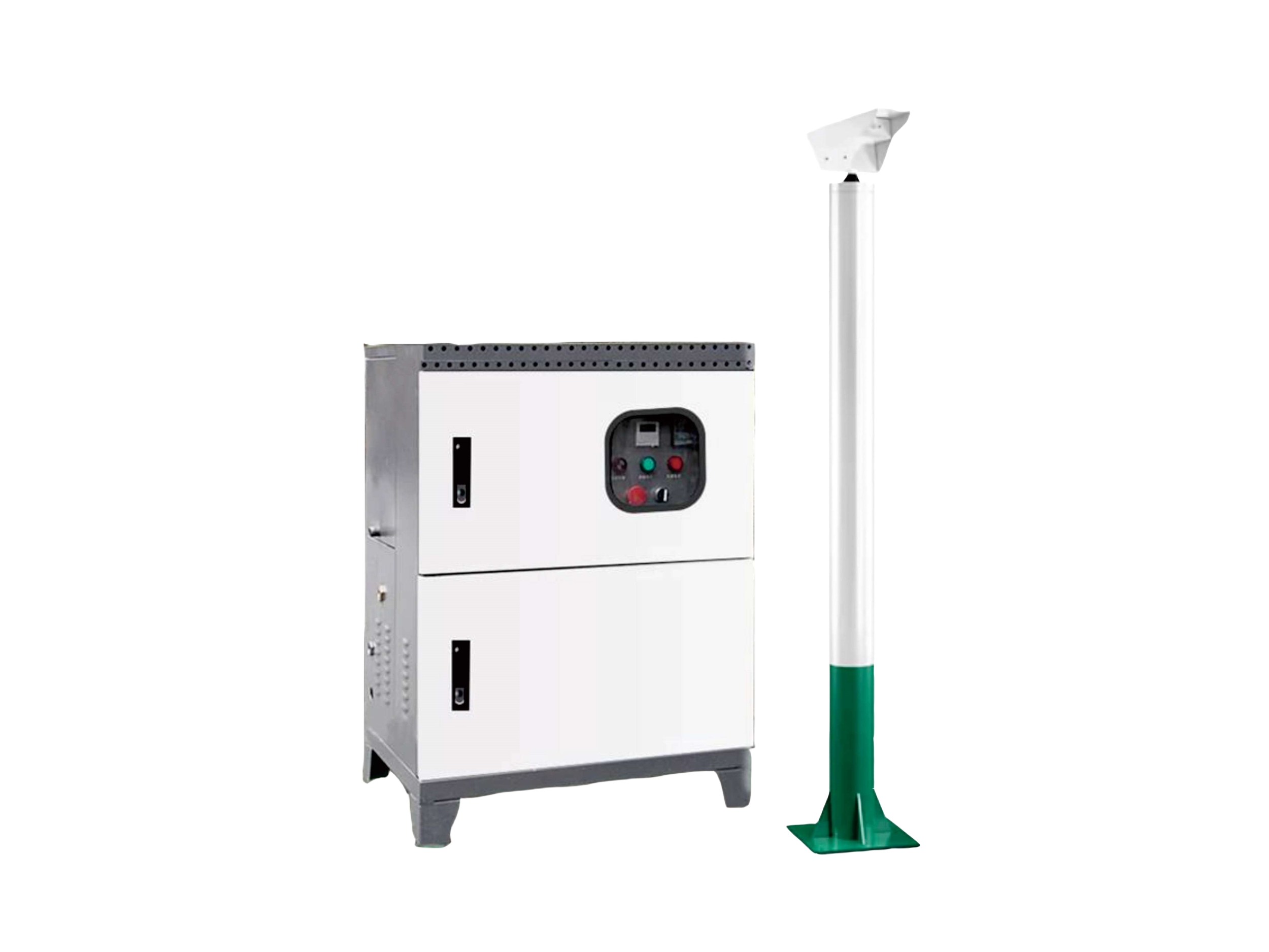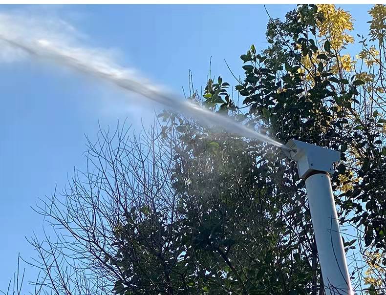 霧樁針對(duì)室外揚(yáng)塵特性研發(fā),采用高壓水射流技術(shù),通過主機(jī)將水加壓至高壓,再通過高壓噴嘴進(jìn)行霧化和噴射,霧化顆粒在100um到15Oum之間,即可保證水滴在室外環(huán)境下不至于快速蒸發(fā),有效地進(jìn)行抑塵降塵,又不會(huì)造成抑塵區(qū)域積水。