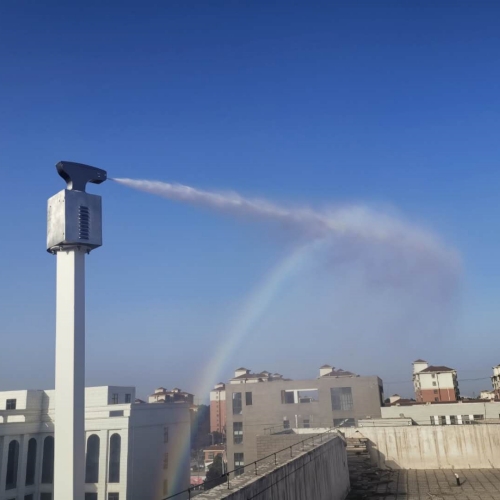 霧炮又稱霧炮機(jī)、噴霧炮,根據(jù)風(fēng)送原理,先使用進(jìn)口高壓泵以及微細(xì)霧化噴嘴將水霧化,再利用風(fēng)機(jī)風(fēng)量和風(fēng)壓將霧化后的水霧送到較遠(yuǎn)的距離,使得水霧到達(dá)較遠(yuǎn)距離同時(shí)能夠覆蓋更大面積,水霧與粉塵凝結(jié)后降落,從而達(dá)到降塵目的。