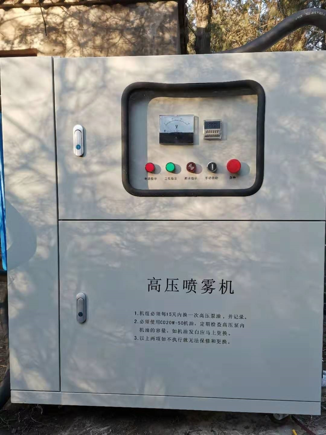 霧樁通過水泵動力源的驅(qū)動作用,通過主機(jī)將水加壓至高壓,再通過高壓噴嘴進(jìn)行霧化和噴射,霧化顆粒在100um到150um之間,噴灑到半徑可達(dá)8-15米,有效解決了戶外除塵常常因?yàn)轱L(fēng)力降低噴霧除塵效果的問題,提高了噴霧效果和資源利用效率。